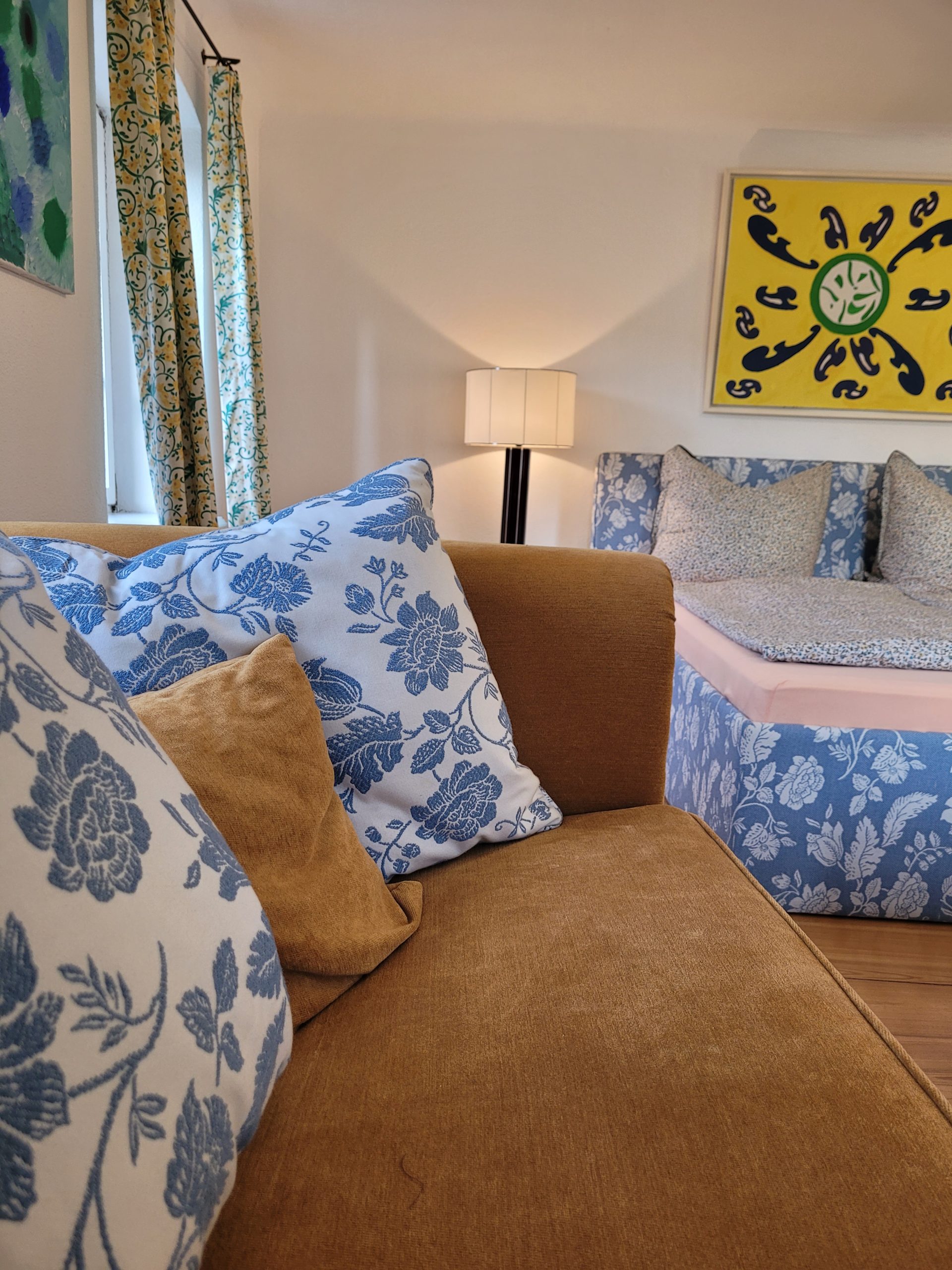 Das Zimmer Gartenblick ist ideal für Gäste, die ein helles, ruhiges und großzügiges Doppelzimmer auf dem Land suchen – mit Platz zum Entspannen und dem besonderen Flair eines alten Hofes.